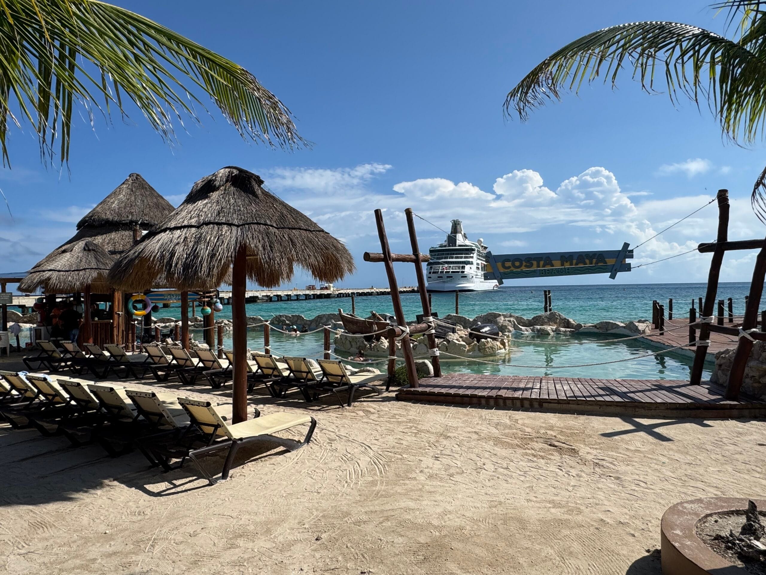 You should receive the ticket for your excursion in your stateroom, which contains the meeting time and location. Since ships dock in Puerto Costa Maya, we were instructed to meet at the end of the pier in Zone 4 at our designated time. I recommend limiting the number of items you bring with you as you don’t need much for this excursion. You want to wear your swimsuit and coverup along with comfortable shoes for walking. You are barefoot for the experience, so it is just whatever shoes you would like to walk in to get to the designated meeting location and spa.